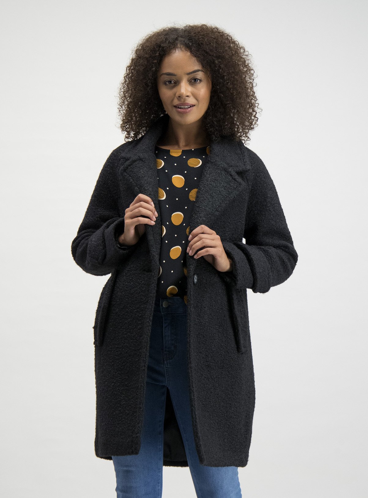 Womens Black Bouclé Coat | Tu clothing