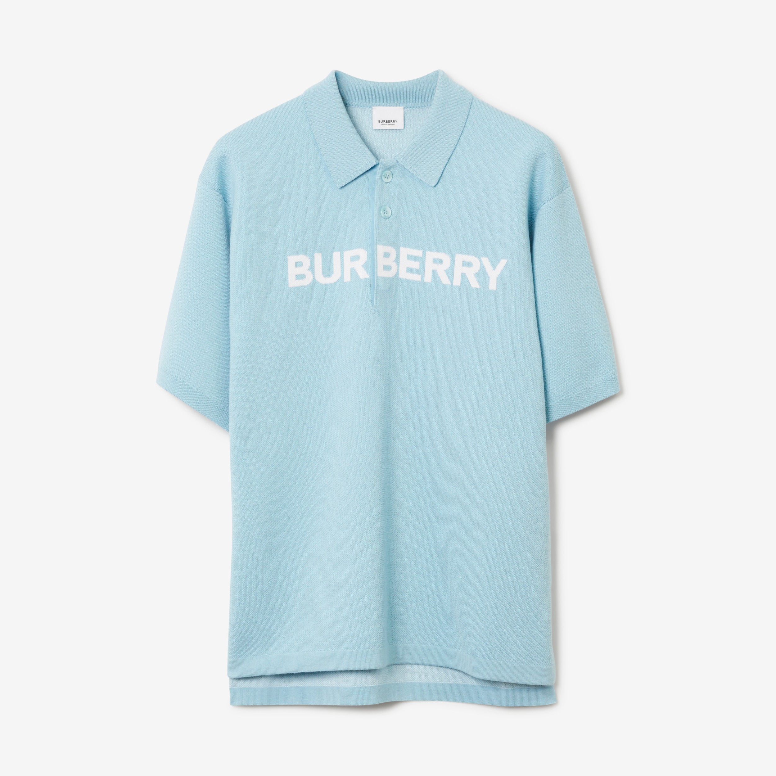Logo Detail Wool Cotton Polo Shirt in Duck Egg Blue - Men | Burberry® Official