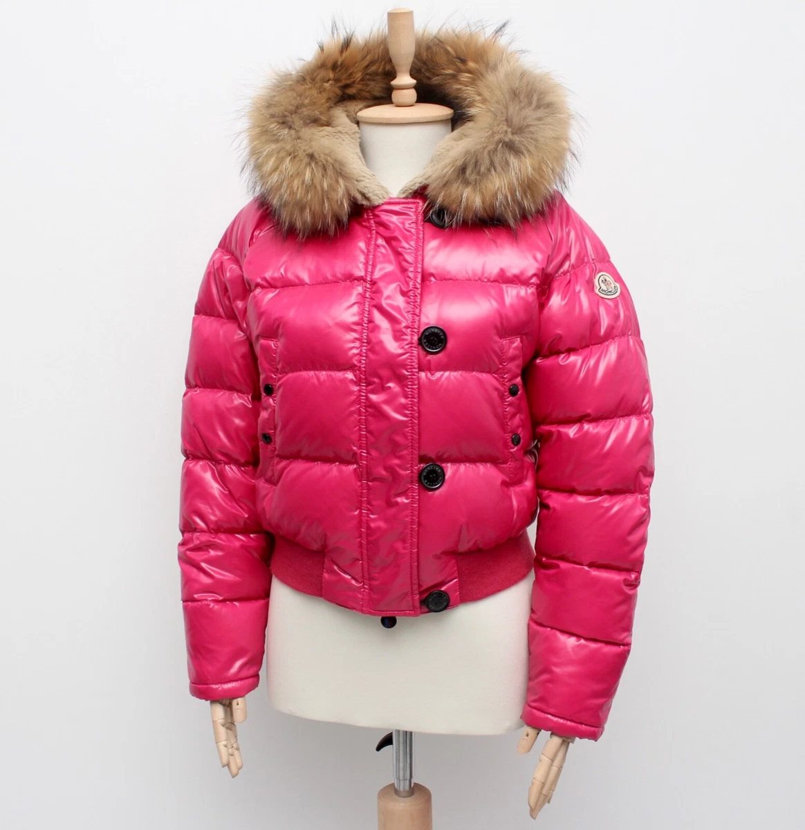 Womens MONCLER Alberta Down Puffer Jacket Coat Full Zip Real Fur Trim 3 M-L PINK | eBay