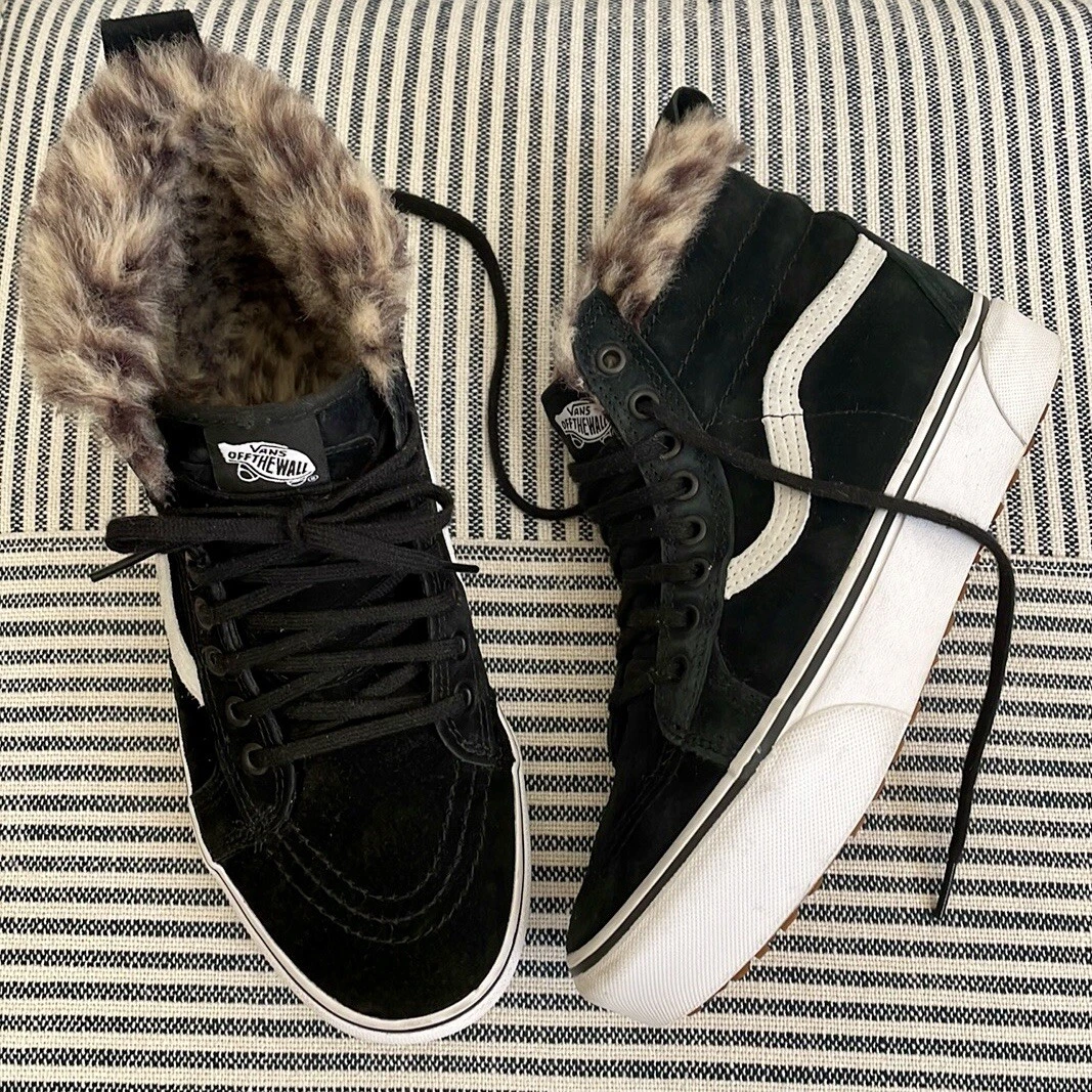 Vans Sk8-Hi Faux Fur Lined Platform Sneaker Black Leopard Faux Fur Size 8.5 | eBay