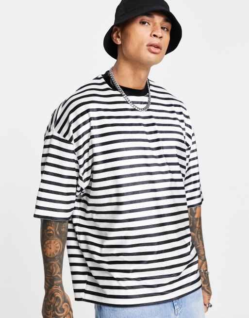 ASOS DESIGN oversized stripe velour t-shirt in black u0026 white | ASOS